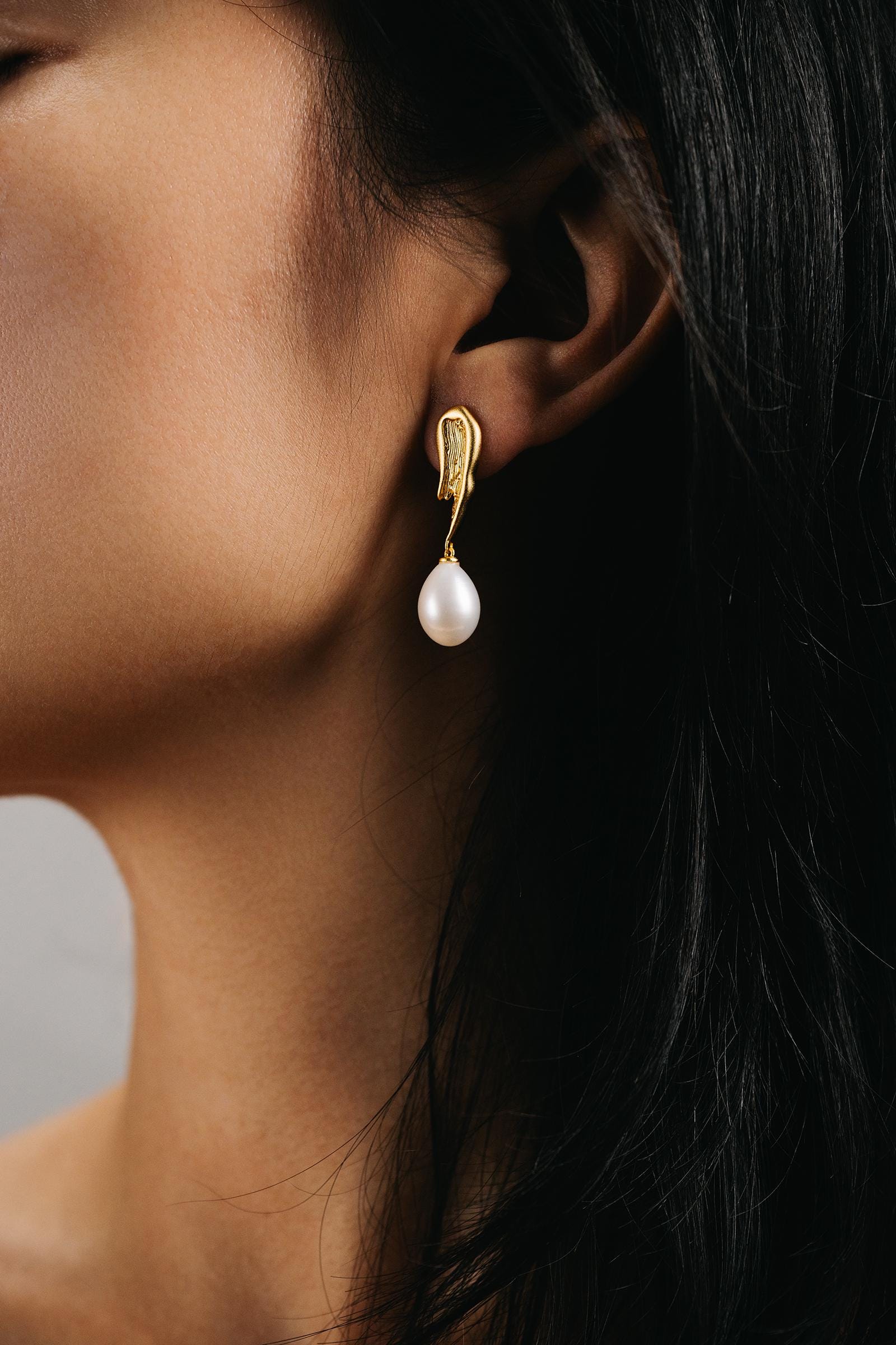Add elegance to your look with these small freshwater pearl drop earrings. Each earring features a delicate gold paintbrush stroke design, combining classic beauty with modern style. Perfect for everyday wear or special occasions.