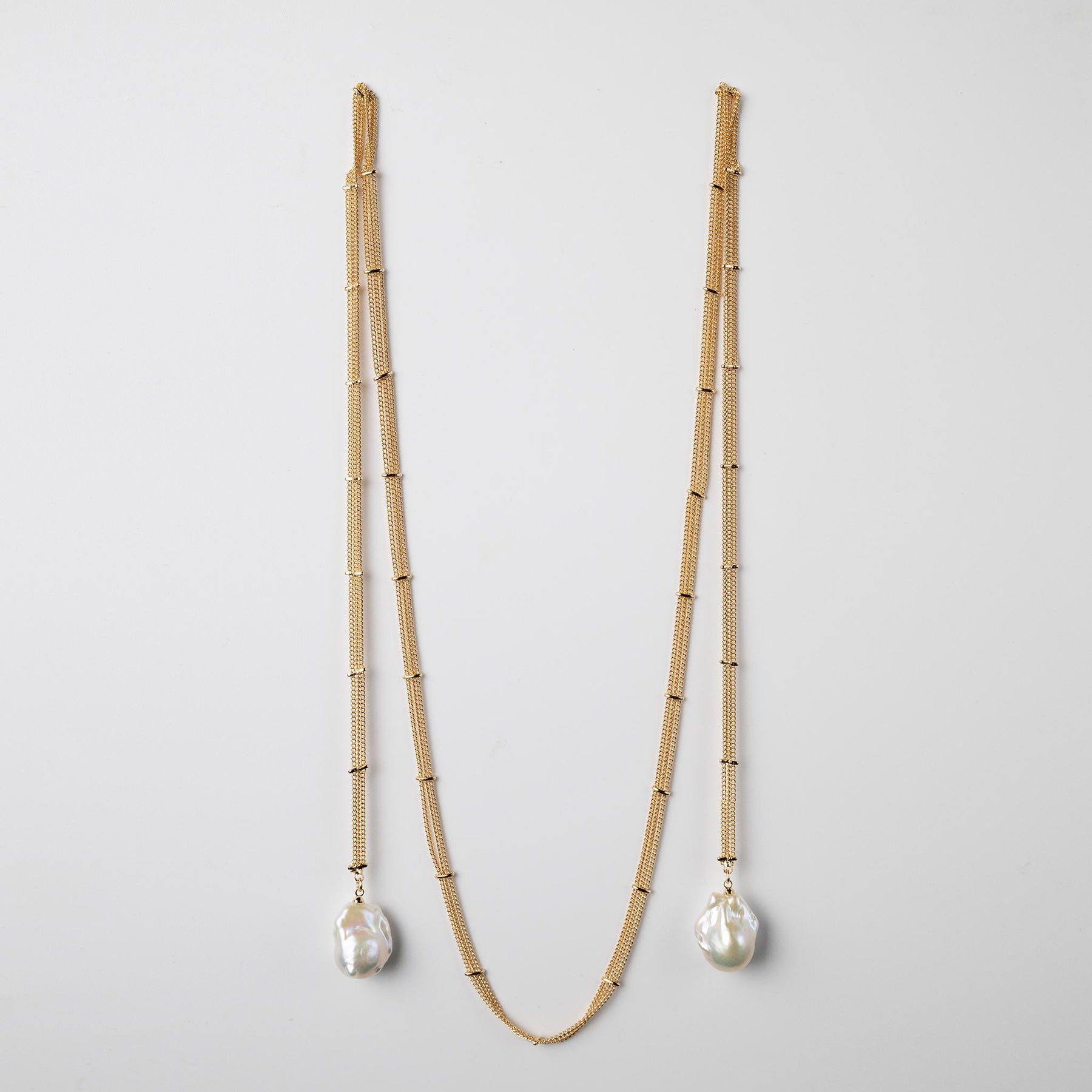 Elevate your style with this Baroque Pearls Necklace, featuring a long, gold-filled chain that effortlessly layers for a versatile vintage look. Designed to stand out, this handcrafted piece combines timeless elegance with durable materials for everyday wear.